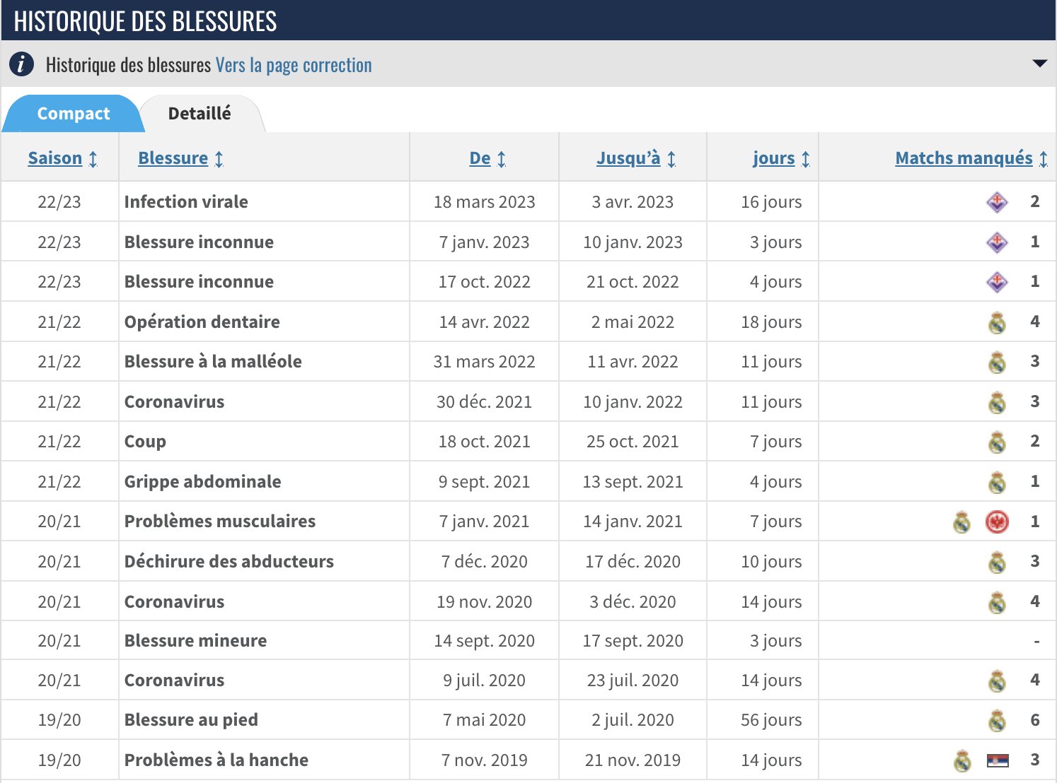 Il connait en moyenne 2 blessures par saison depuis l’exercice 19/20.
